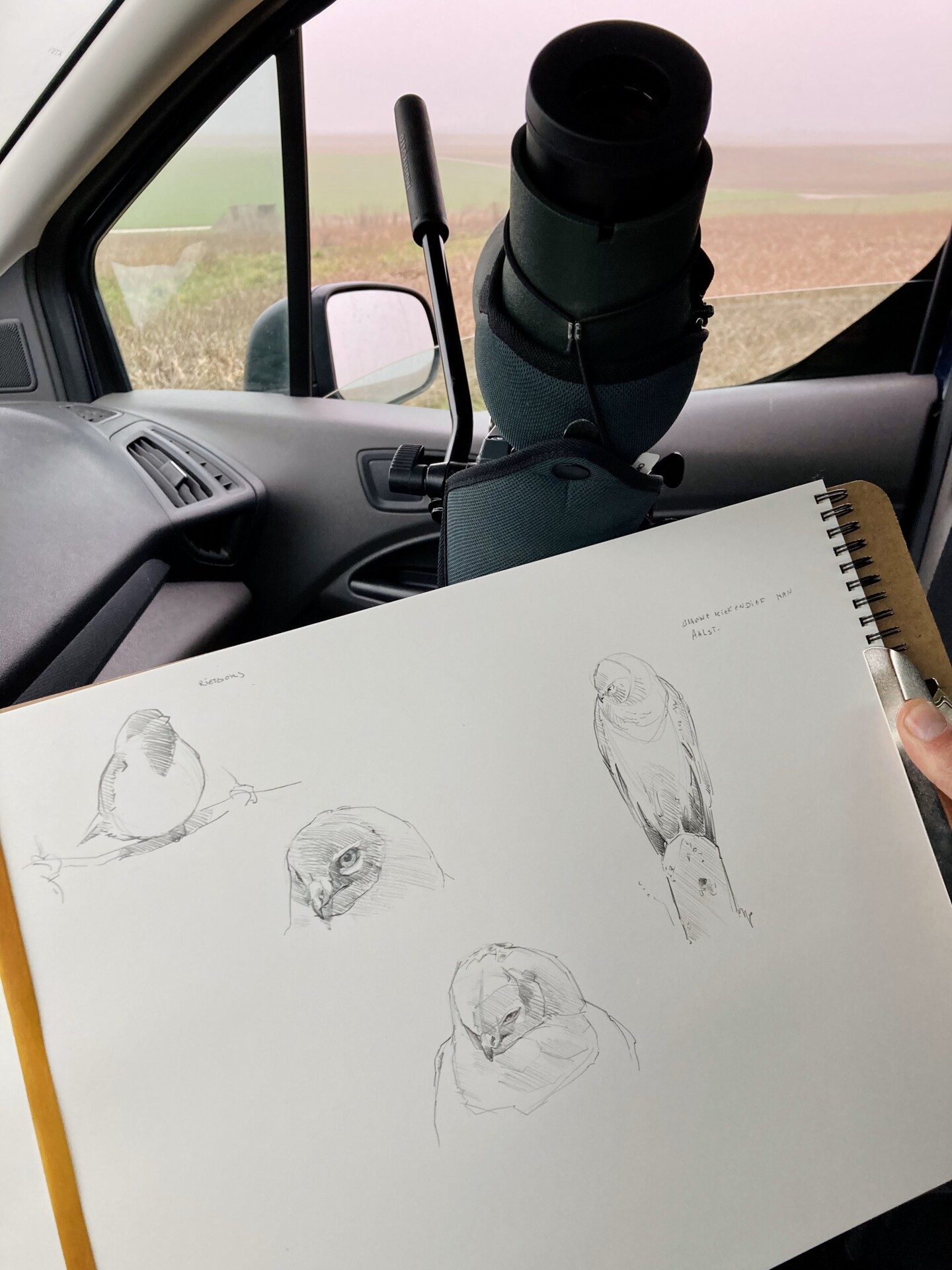 In afwachting hiervan, gaan we eerst op zoek naar een intussen zeldzame standvogel in de streek, namelijk de Grauwe Gors. Ooit een vogel van valleien en graslanden, nu teruggedrongen tot intensief landbouwgebied waar ze profiteren van de weinige kruidenranden en houtkanten die hen nog rest in het landschap. Met wat geluk laten ze zich ook horen, wanneer er vijftig of meer Grauwe Gorzen tezamen hun ‘sleutelbos’ laten rinkelen, krijg je een winterconcert waar menig componist slechts van kan dromen! Verder kijken we uit naar andere typische wintergasten, honderden Veldleeuweriken die zich tegoed doen aan jonge scheutjes, een jagend Smelleken of wat dacht je van de Velduil die in het laatste licht zijn typische blaf laat horen over dit uitgestrekt landschap. Laat je verrassen door wat er zich in dit pittoreske landschap schuilhoudt!