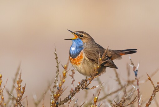De Blauwborst is misschien wel één van de meest begeerde vogels van Nederland. Hij prijkt vaak bovenaan de wensenlijstjes van mensen die er nog nooit een hebben gezien en ook het hart van doorgewinterde vogelaars maakt doorgaans een sprongetje als ze de eerste van het jaar weer horen en zien. Zijn mooie zang en oogverblindende verenkleed hebben hier vast het een en ander mee te maken.