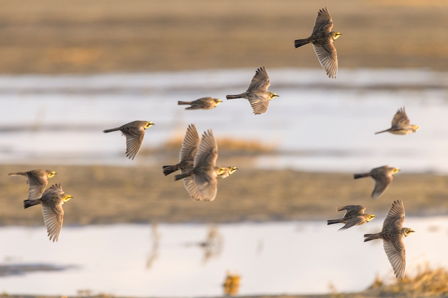 In het polderlandschap foerageren vele duizenden ganzen, met name Brandganzen en Rotganzen. Daartussen zien we ook vele honderden Goudplevieren, die deels al aan het ruien zijn naar hun fraaie zomerkleed. Daarnaast zijn de eerste zomergasten zoals Grutto's en misschien een Rouwkwikstaart te verwachten. Kleurrijke eendensoorten als Smient, Pijlstaart en Wintertalingen foerageren in de slootjes, terwijl Torenvalkjes en misschien een Bruine Kiekendief, Blauwe Kiekendief of zelfs een Smelleken door de polders jagen. De gidsen beschikken ook over een warmtebeeldkijker waarmee het misschien lukt om een Houtsnip of zelfs een Bokje te vinden.