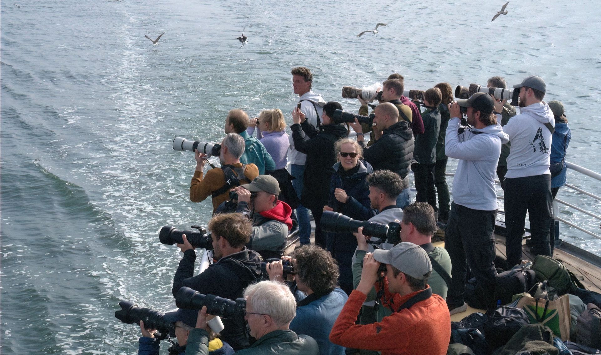 Nu is echt iedereen klaarwakker. Ik schreeuw naar het bovendek dat het schip moet worden stilgelegd en de groep meeuwen achter de boot wordt groter door het aanbod van brood. Dit zijn de meest zenuwslopende momenten die je als gids kunt meemaken. Er is een absolute ‘cosmic mindfucker’ ontdekt en gedetermineerd maar hij is uit beeld en hangt ergens in de buurt rond. Nog bijna geen enkele deelnemer heeft de vogel gezien en we moeten tussen de aanwezige meeuwen op zoek…