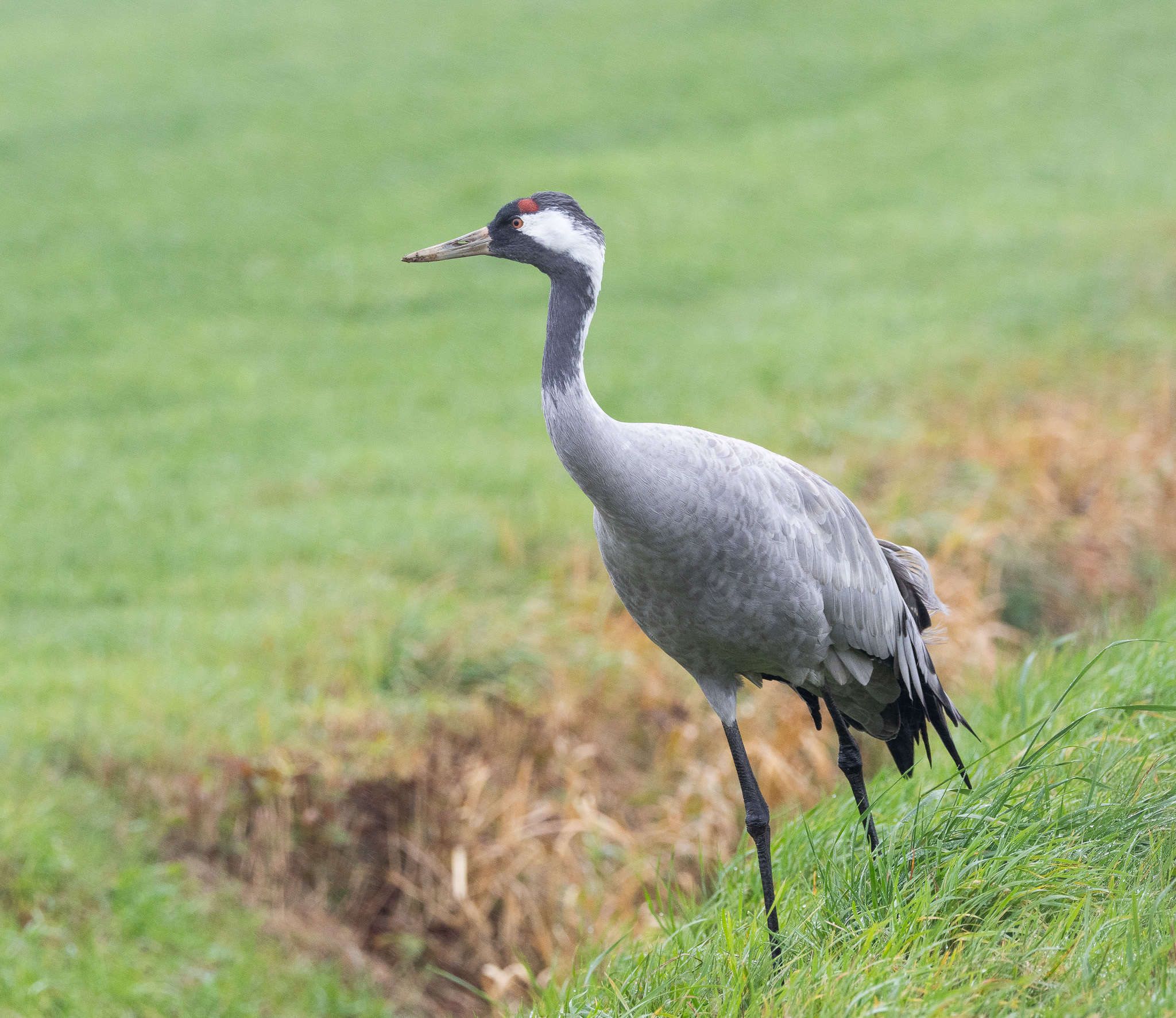 In de middag begint het inderdaad te miezeren en later zelfs stevig te regenen. Onze Kraanvogelsafari vanuit de warme bus biedt daarom uitkomst. Met de schuifdeuren en de ramen open kunnen we regematig grote groepen Kraanvogels tot zeer dichtbij naderen zonder ze op te schrikken en de camera’s laten ratelen. Een goede besteding van de middag met als slotstuk een Kraanvogel die een ware wegblokkade opwierp en onze bus pas na een stevig woordje en wat boze blikken liet passeren.