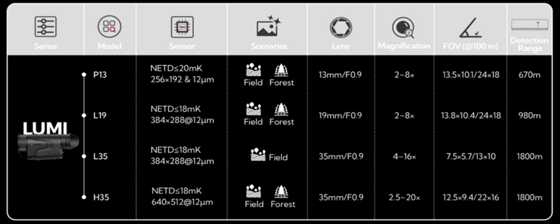 De Nocpix Lumi-serie is het betaaldbare instapmodel van Nocpix. De beeldkwaliteit is prima voor een eerste kennismaking met warmtebeeld en het detecteren van zoogdieren en grotere vogels.