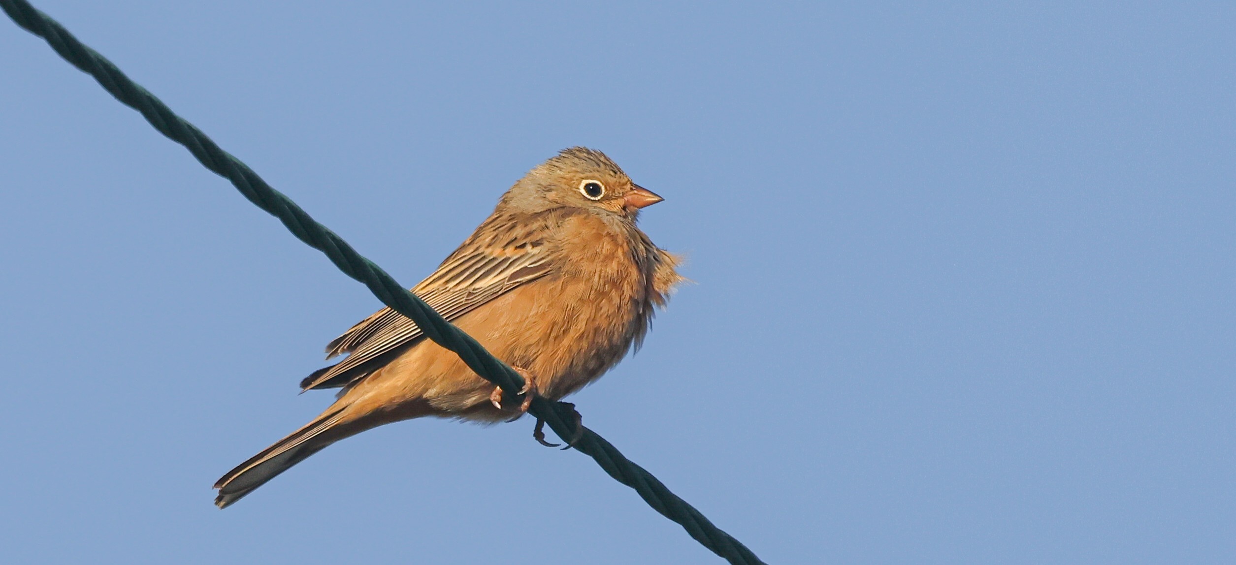 Na de lange dag gisteren doen we vandaag rustig aan met ontbijt om 08:00. Toch staan de meeste deelnemers al in de vroege ochtend weer paraat om de poeltjes te checken. Het is elke keer opnieuw weer een verrassing wat we hier tegenkomen en vandaag worden we getrakteerd op een mannetje Kleine Torenvalk en een fraaie Bruinkeelortolaan op een elektriciteitskabel!