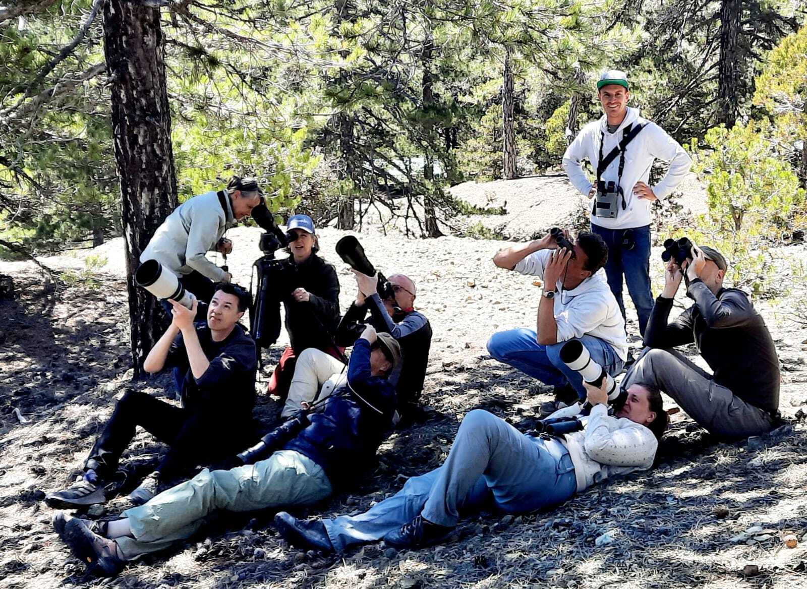 Onderweg naar het dorpje Troodos voor de lunch maken we nog één laatste stop op een locatie waar wel eens een Maskerklauwier is gezien en ook de Cyprusdwergooruil is gehoord. Terwijl de deelnemers naar de klauwier speuren proberen gidsen Gijsbert en Lars een uiltje te vinden in de bomen met behulp van hun warmtebeeldkijker. Gezien de warmte die de bomen afgeven vanwege de zonnige dag, lijkt dit echter een onmogelijke opgave.