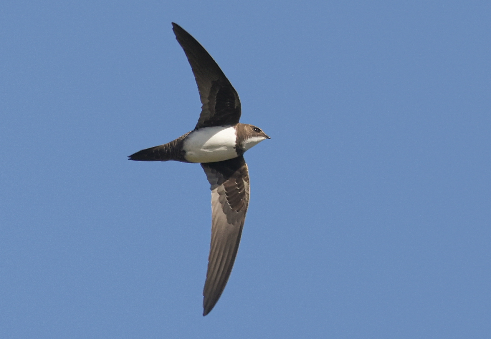Het is tijd voor lunch en terwijl we onze broodjes eten blijven we natuurlijk de lucht in de gaten houden. De zwaluwen zijn nog steeds op trek en we zien ook enkele fraaie Alpengierzwaluwen langsvliegen.