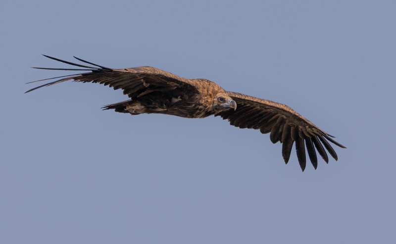Naast de steppegebieden bezoeken we ook het nationaal park Monfragüe. Hier vinden we een gierenrots waar in de ochtend veel Vale Gieren, maar ook Monniksgieren zich mooi laten bekijken. In dit bergachtige landschap vinden we ook soorten als Blauwe Rotslijster, Grijze Gors, Zwarte Tapuit en met geluk zien we misschien wel een Oehoe zitten. Door de lucht vliegen Alpengierzwaluwen, Zwarte Ooievaars en Aasgieren. In de struiken kunnen we de prachtige Blauwe Ekster zien, zingen de Cirlgors en Kleine Zwartkop en ook de eerste Westelijke Baardgrasmussen zijn weer gearriveerd.