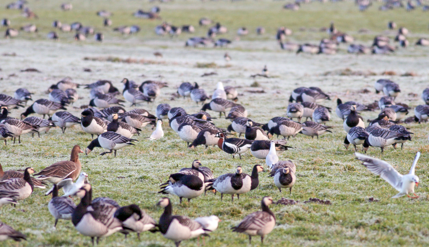 In de winter is Nederland een waar walhalla voor watervogels. Vele honderdduizenden watervogels overwinteren hier omdat in hun broedgebieden in Scandinavië en nog noordelijker de wateren vaak dichtvriezen. Op het Markermeer zijn de aantallen watervogels in de winter daardoor bijzonder hoog. Zo overwinteren hier duizenden Toppers en zijn er ook prachtige groepen Nonnetjes, Smienten en Wintertalingen te vinden. Tussen deze soorten bevinden zich ook vaak Krooneenden, Grote en Middelste Zaagbekken en Brilduikers. Met een beetje geluk zien we tijdens deze excursie zo’n vijftien soorten eenden. Aan de andere kant van de dijk kunnen we bovendien prachtige groepen Brandganzen bewonderen met de mogelijkheid dat daartussen een Roodhalsgans te vinden is!